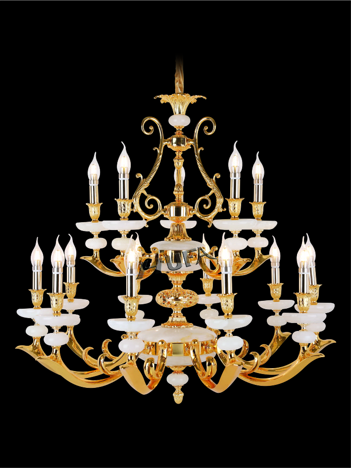 Đèn chùm đồng, đá ngọc thạch trang trí cao cấp Hufa CĐ 1250/15 được thiết kế theo phong cách cổ điển và tân cổ điển, sử dụng chất liệu đồng nguyên chất 100%, ngọc thạch thiên nhiên gia công tinh xảo, phong cách sang trọng quý phái.