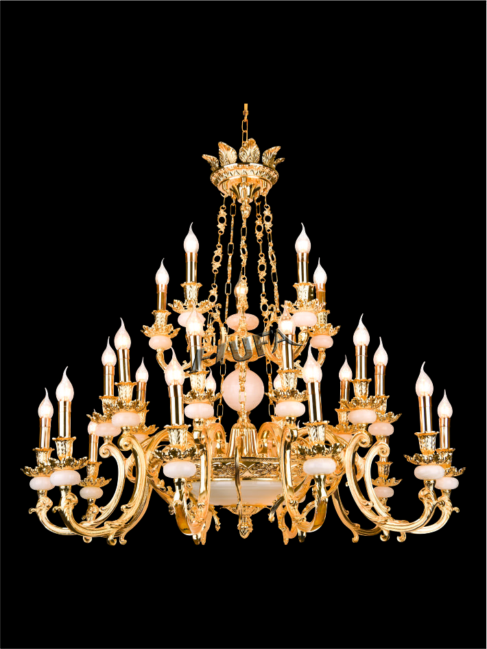 Đèn chùm đồng, đá ngọc thạch trang trí cao cấp Hufa CĐ 1273/25 được thiết kế theo phong cách cổ điển và tân cổ điển, sử dụng chất liệu đồng nguyên chất 100%, ngọc thạch thiên nhiên gia công tinh xảo, phong cách sang trọng quý phái.